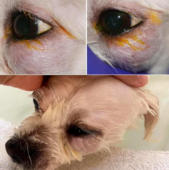 Eye removal is a challenging recommendation. Regardless of the frequency with which we perform enucleations, it is never an easy discussion. Even when a painful, blinding disease process is present, eye removal can be immensely hard for owners. The eye is seen not only as an important feature of the face and thus the appearance, but many owners attest to the importance of their dog’s eyes as a means of communication. Looking in to their pet’s eyes not only reinforces a mutually loyal connection, but can serve as way to communicate fear and anxiety, enjoyment, or peace and calm. When a patient develops a painful and blinding ocular disease, eye removal offers relief. When it comes to periocular neoplasia, the eye does not necessarily present blinded nor painful. As medical professionals, we can wrap our heads around the necessity for tumor excision with clean margins which at times includes the sacrifice of other functional tissue. However, enucleation of a sighted, comfortable, and communicative eye can be gut wrenching. With the lack of macroscopic disease, reasoning for enucleation (or exenteration) becomes abstract and even academic. As discussion about Leo Lambchop’s case progressed, even knowing the differentials, I found myself debating with the owner and with myself about the necessity of exenteration.